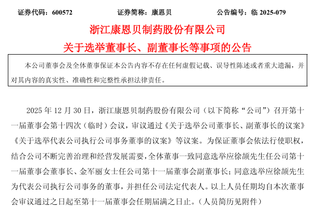 12月30日,康恩贝发布公告称,公司召开第十一届董事会第十四次(临时)会议,全体董事一致同意选举应徐颉先生任公司第十一届董事会董事长;同意选举应徐颉先生为代表公司执行公司事务的董事什么是股票里的杠杆,并担任公司法定代表人,任期均自本次董事会审议通过之日起至第十一届董事会任期届满之日止。